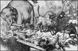 An 1860 issue of Railsplitter and an 1872 cartoon in Harper's Weekly connected elephants with Republicans, but it was Nast who provided the party with its symbol.